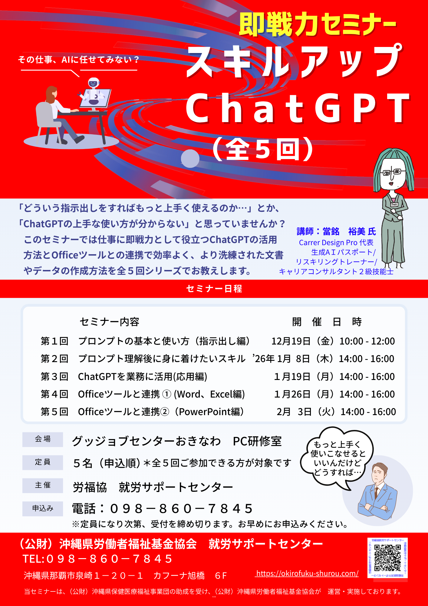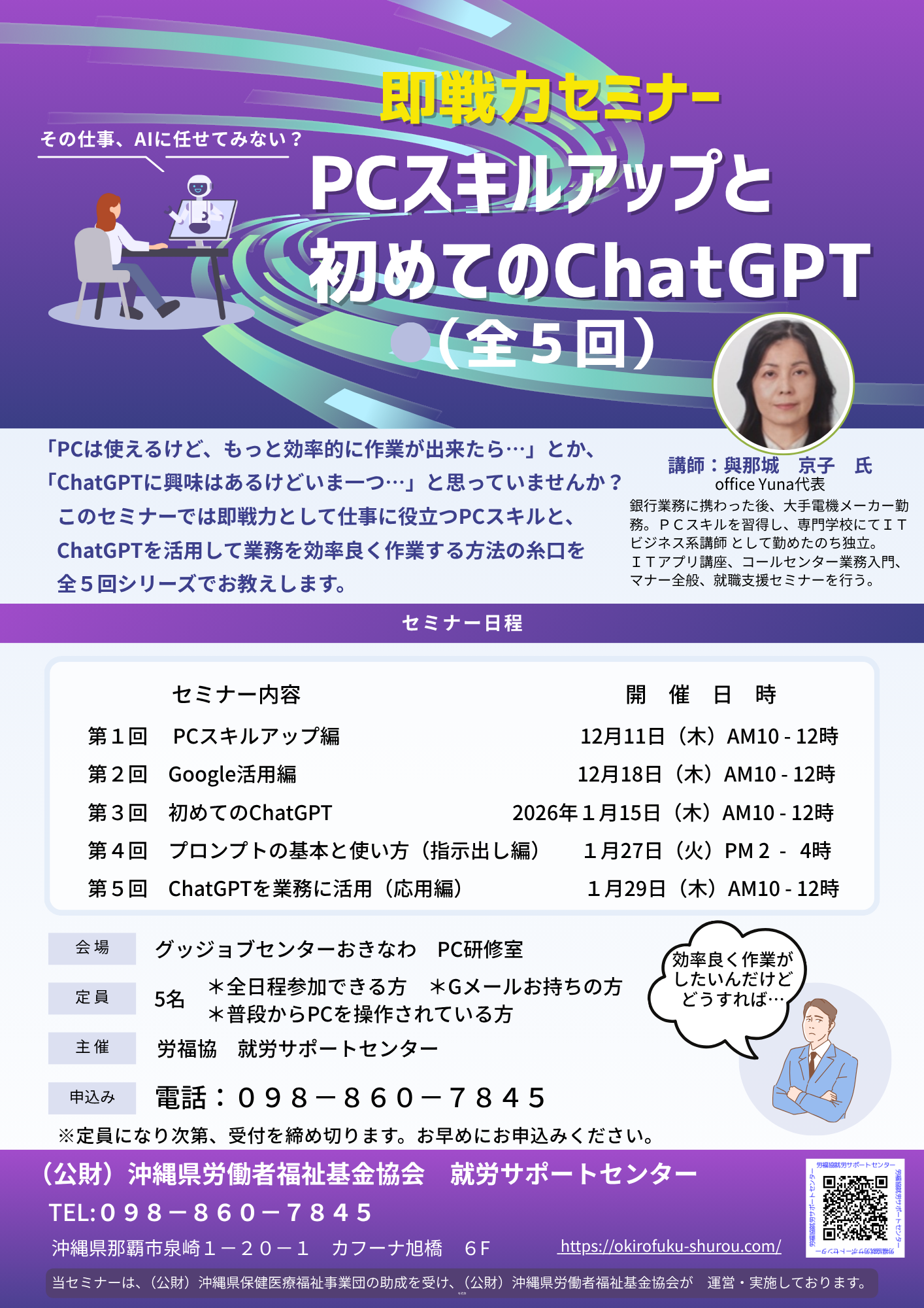 『即戦力セミナー PCスキルアップと初めてのChatGPT』セミナーは満席となりました。
