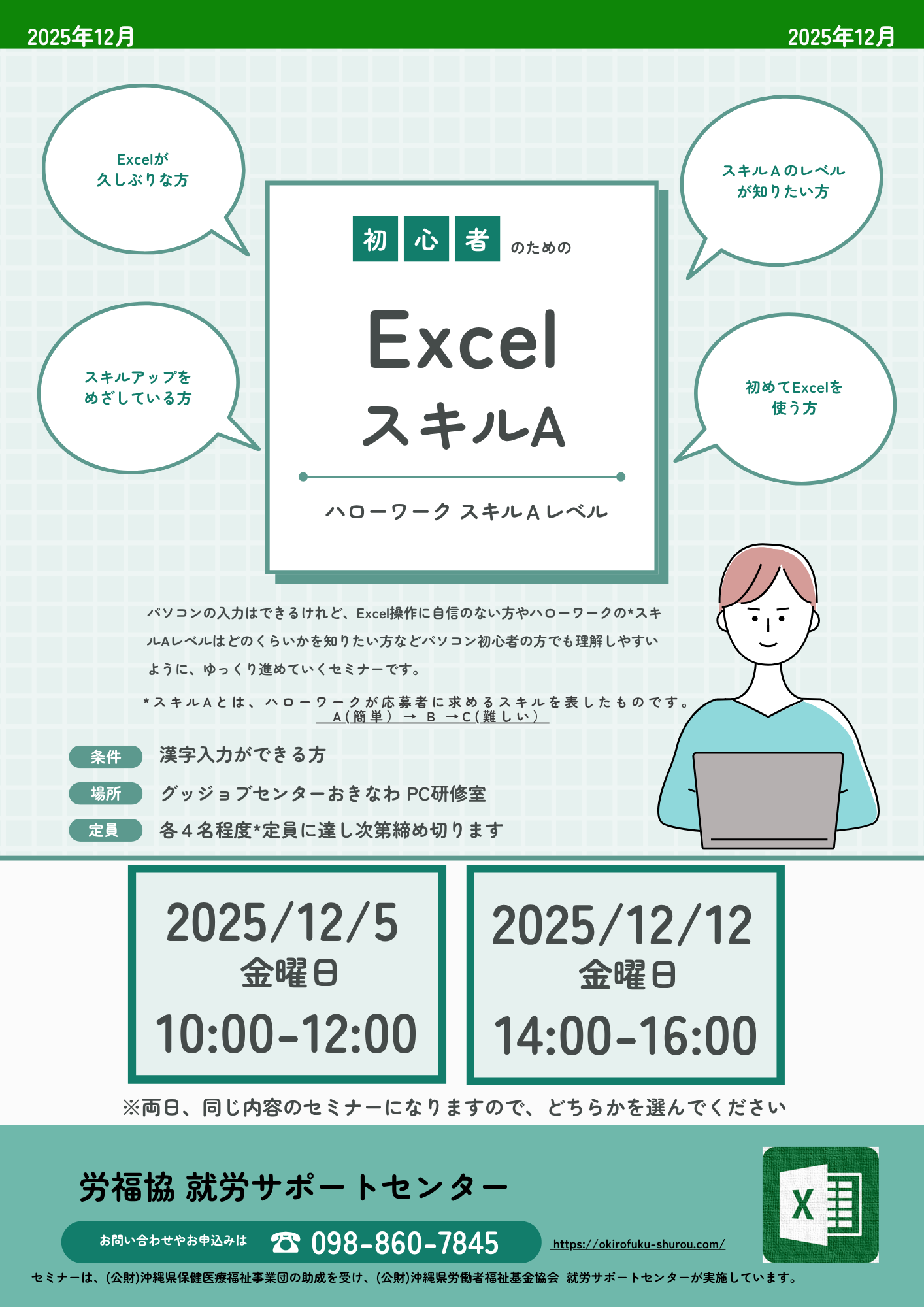 12月開催のExcel【A】パソコンセミナー(満席となりました)