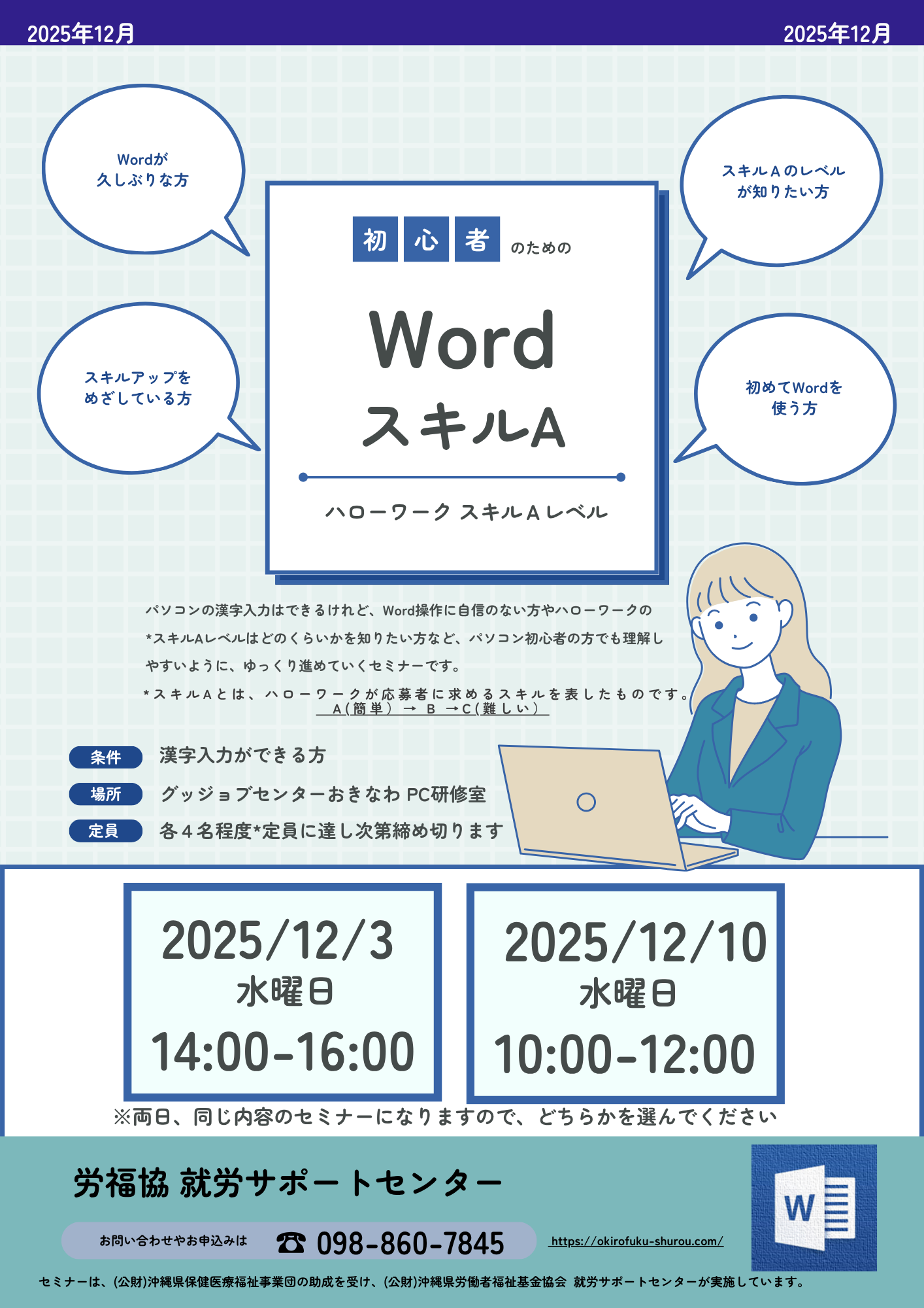 12月WordスキルAセミナー満席となりました。